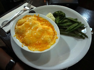 The piper comes back for another round. The menu says we are having a (vegetarian) haggis taster. In this setting, it is not going to be a discreet event. The piper does the address to the haggis with the theatrical performance of an actor used to Shakespeare plays, causing the audience to cheer and roar multiple times. He even picks on me -- and I fight back, much to the audience's pleasure.